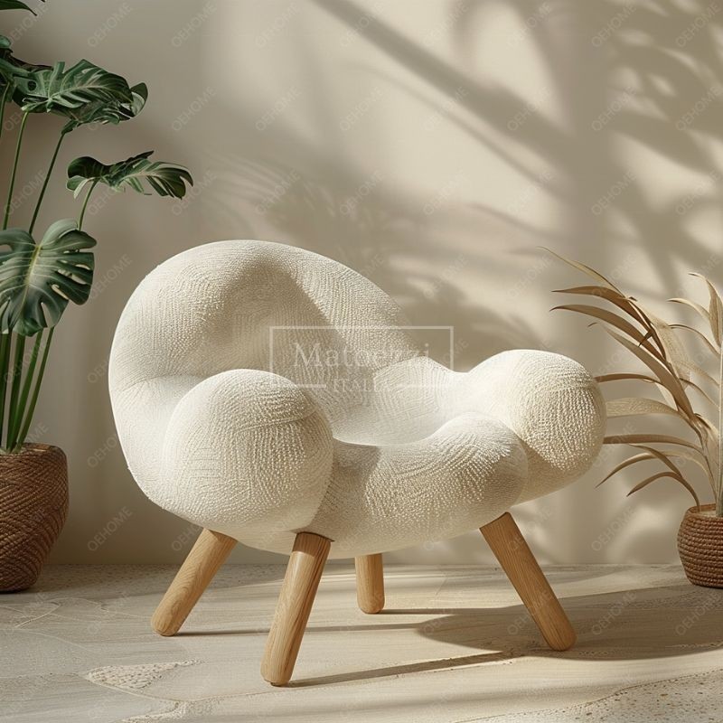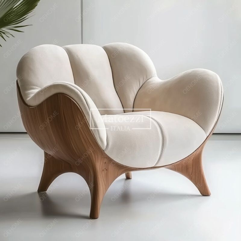 This chair draws inspiration from the natural elegance of flower petals unfolding in the morning light. The soft curves and sculpted wood frame echo both organic growth and ergonomic comfort—merging nature's poetry with functional beauty.