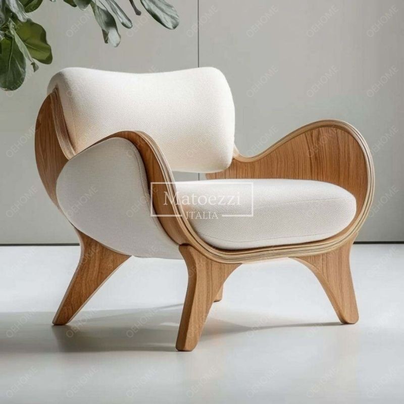 Product Description: Upgrade your living space with this modern solid wood armchair, designed with an elegant sculptural frame and premium upholstered seat. Crafted from high-quality natural oak wood, this single lounge chair combines durability with a warm, timeless aesthetic. The ergonomically curved backrest and armrests provide exceptional comfort, making it an ideal choice for living rooms, bedrooms, hotel suites, lobbies, cafes, and reading corners. This accent chair features a hand-polished wood frame with a smooth finish, paired with a removable high-density foam cushion wrapped in soft linen fabric. The minimalist yet luxury Scandinavian style design fits seamlessly into modern, mid-century, and contemporary interiors.