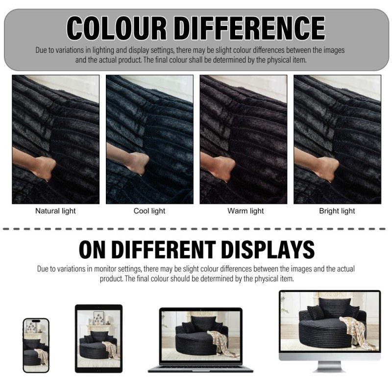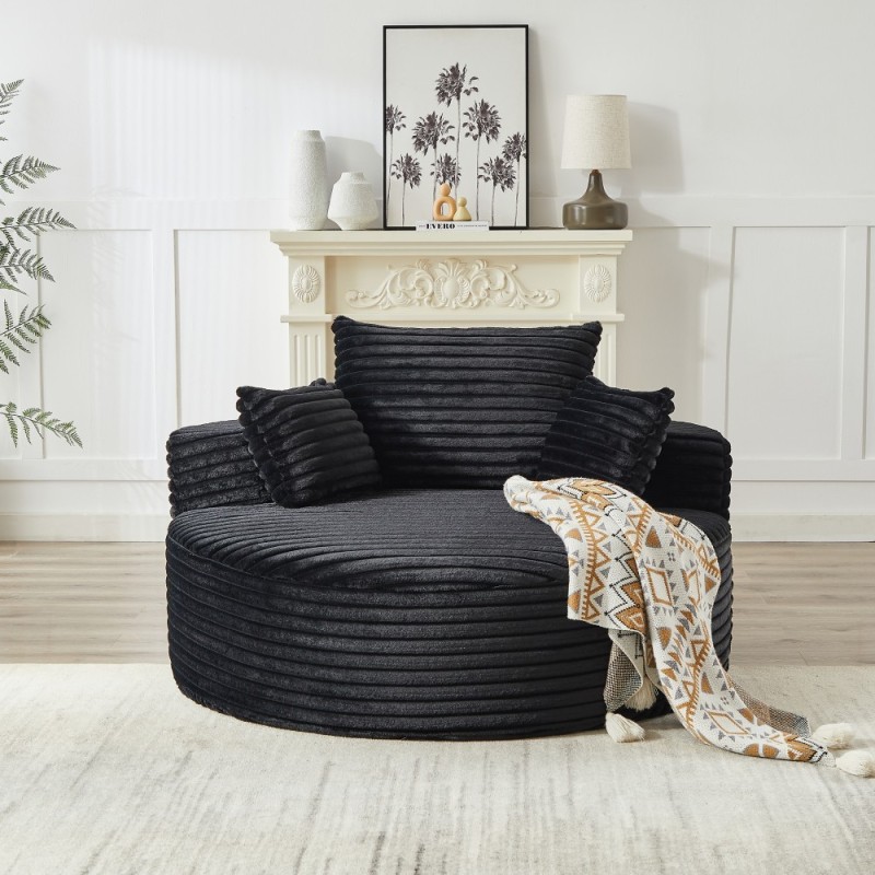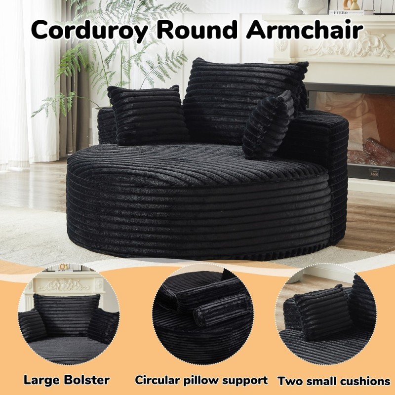 55-inch Fluffy Modern Round Single Sofa,No Assembly Required,Premium Corduroy & Chenille,Comfy Sleeper Chair for Living Room