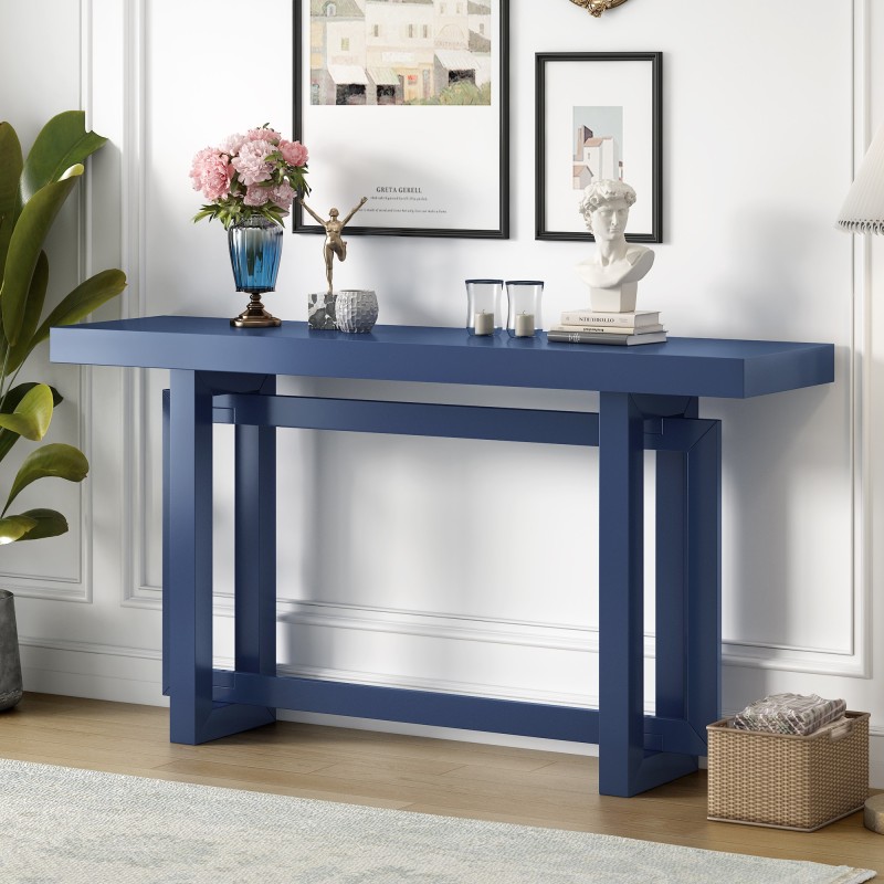 59.1'' Painted Entryway Console Table with Pine Veneer, Triple Rectangle Solid Pine Legs, Long Sofa Table for Hallway, Living Room, and Kitchen