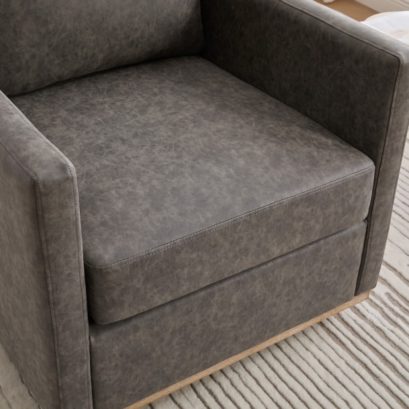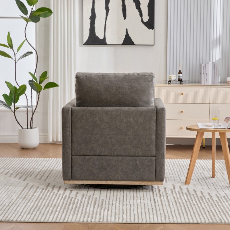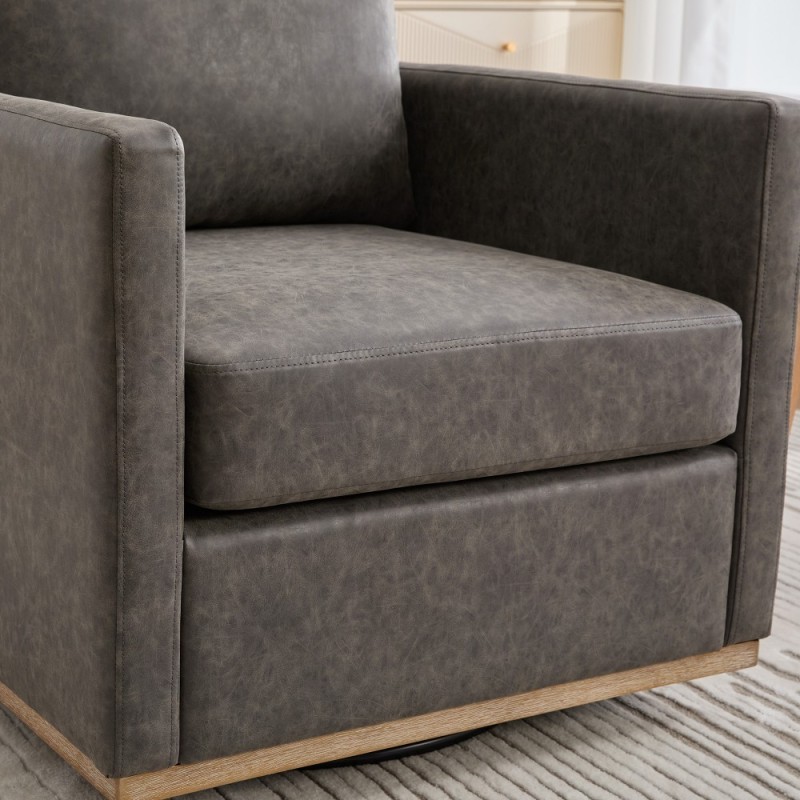 Built with a solid wood and plywood frame, this single sofa chair includes a hidden metal swivel mechanism surrounded by a weathered wooden base, giving it both stability and an elevated aesthetic. With a removable back cushion and easy 10-minute assembly, this swivel lounge chair is a practical and stylish choice for living rooms, bedrooms, nurseries, studios, or apartment spaces.