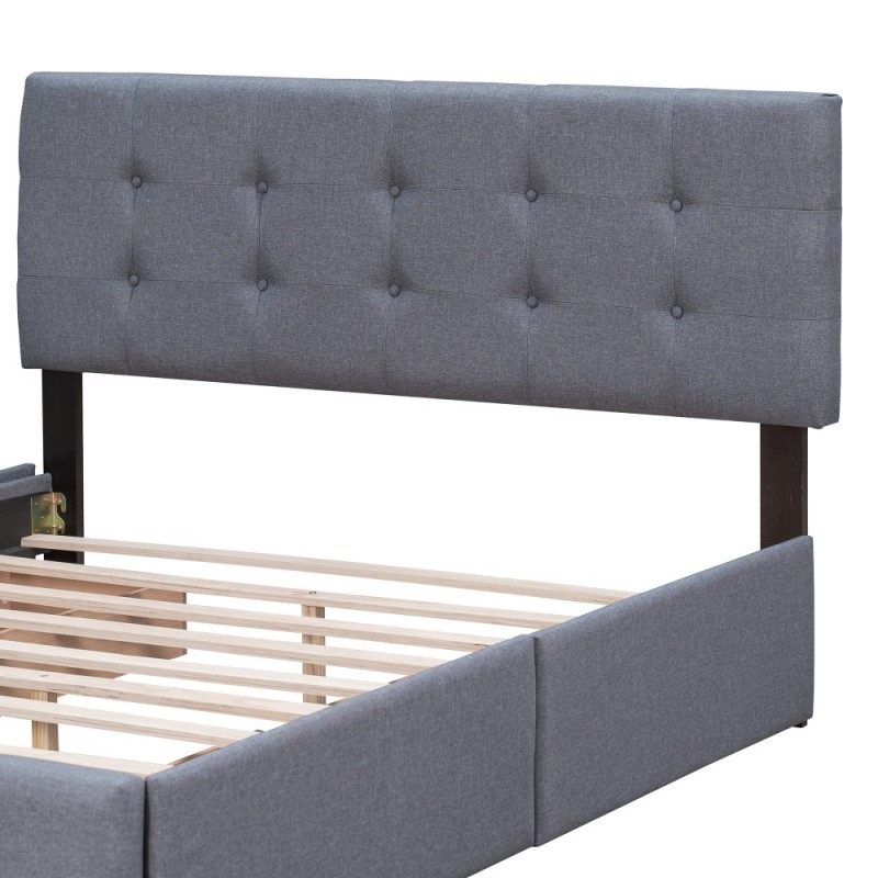 Queen Size Upholstered Platform Bed with Tufted Headboard and 4 Storage Drawers, No Box Spring Needed, Linen Fabric