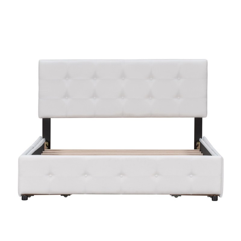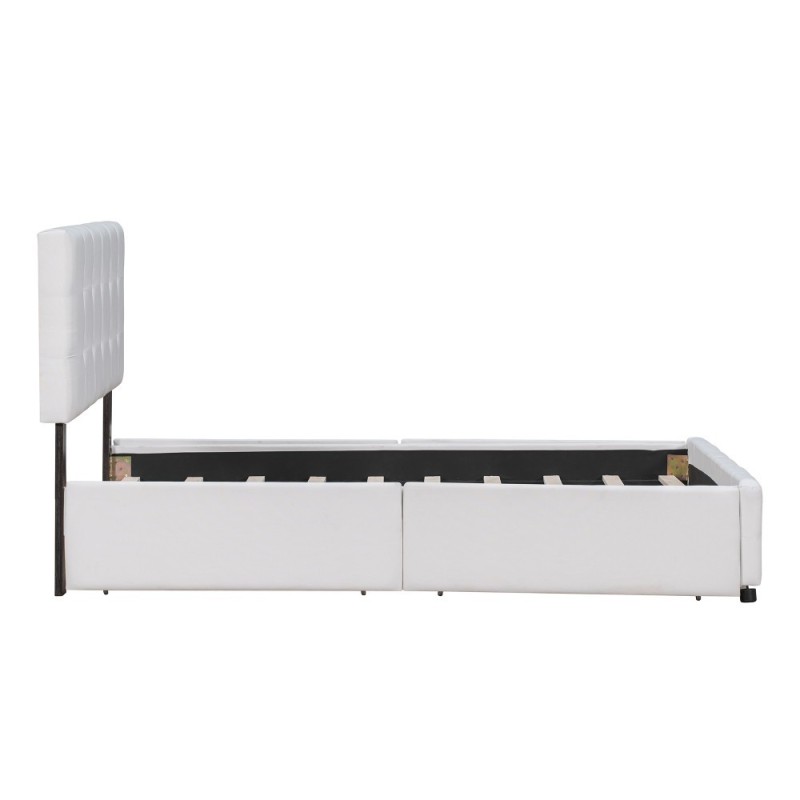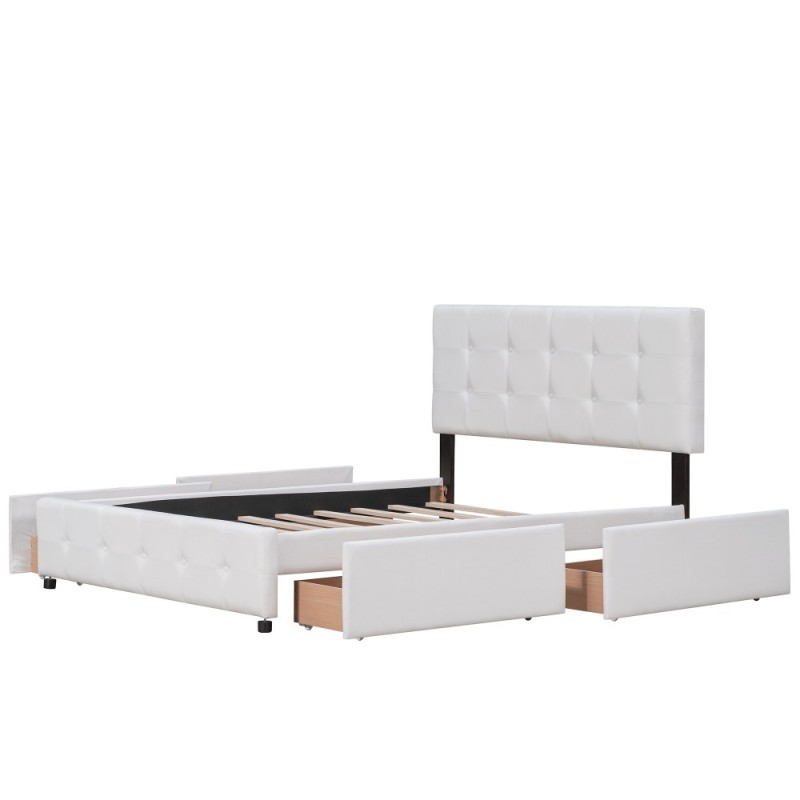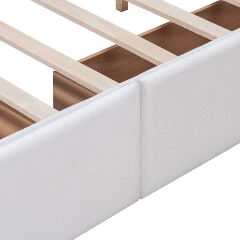 Equipped with four spacious pull-out drawers, this bed maximizes under-bed storage, helping you organize clothing, linens, toys, and other essentials with ease. The wooden slat system eliminates the need for a box spring, providing firm and reliable mattress support. This queen-size platform bed is perfect for modern homes seeking both functionality and style.