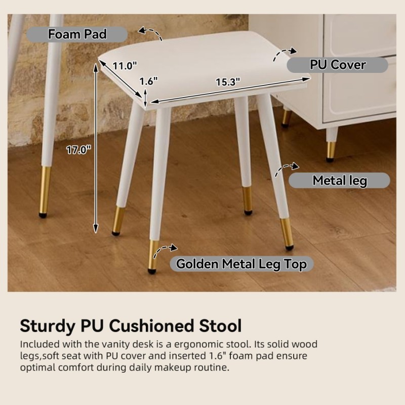 Premium Materials: Smooth engineered wood, fluted glass cabinet door, PU stool cushion