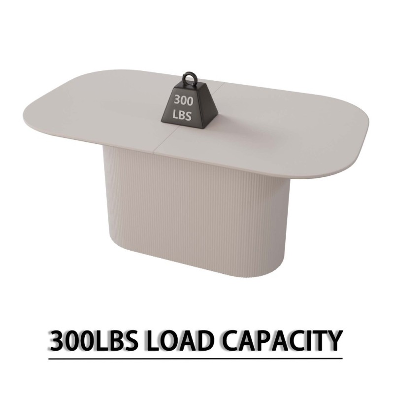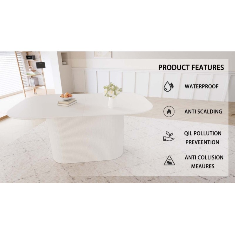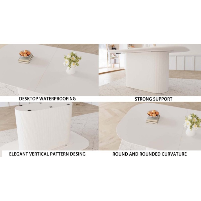 This 63-inch cream dining table brings a modern, elegant presence to any dining room or kitchen. Crafted from high-quality MDF, the table showcases a thick rectangular top paired with vertical striped legs, creating a refined and contemporary silhouette. Its spacious 63" × 35" surface comfortably seats 4 to 8 people, making it a perfect option for daily meals, family gatherings, and entertaining guests.