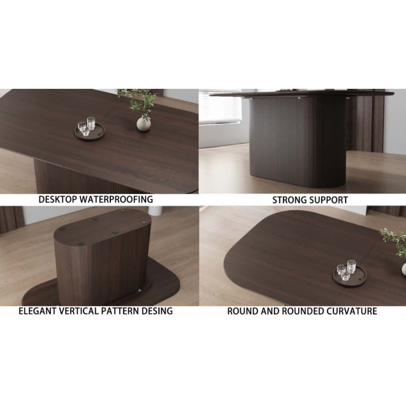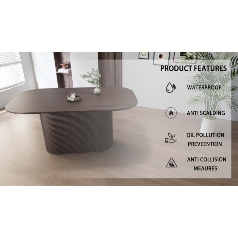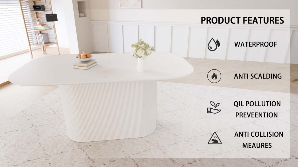 This 63-inch cream dining table brings a modern, elegant presence to any dining room or kitchen. Crafted from high-quality MDF, the table showcases a thick rectangular top paired with vertical striped legs, creating a refined and contemporary silhouette. Its spacious 63" × 35" surface comfortably seats 4 to 8 people, making it a perfect option for daily meals, family gatherings, and entertaining guests.