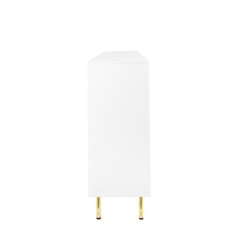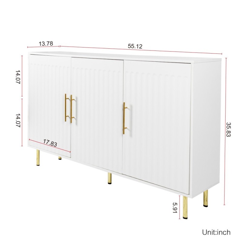 This modern 55.12-inch sideboard is designed to elevate any home with its clean white finish, fluted door panels, and elegant gold metal handles. Crafted from durable Particle Board and MDF, it blends stylish aesthetics with everyday practicality, making it perfect for dining rooms, living rooms, kitchens, or entryways.
