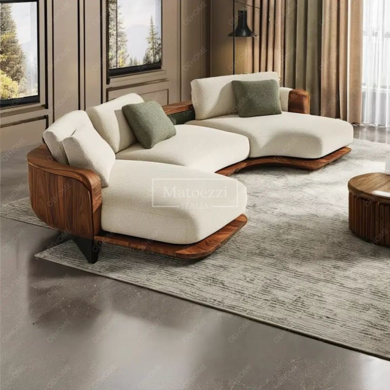 Choose our curved solid wood sofa for a perfect mix of style, comfort, and durability. Order now!